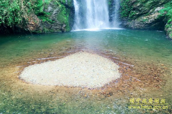黄桑六鹅洞瀑布现“心形岛”
