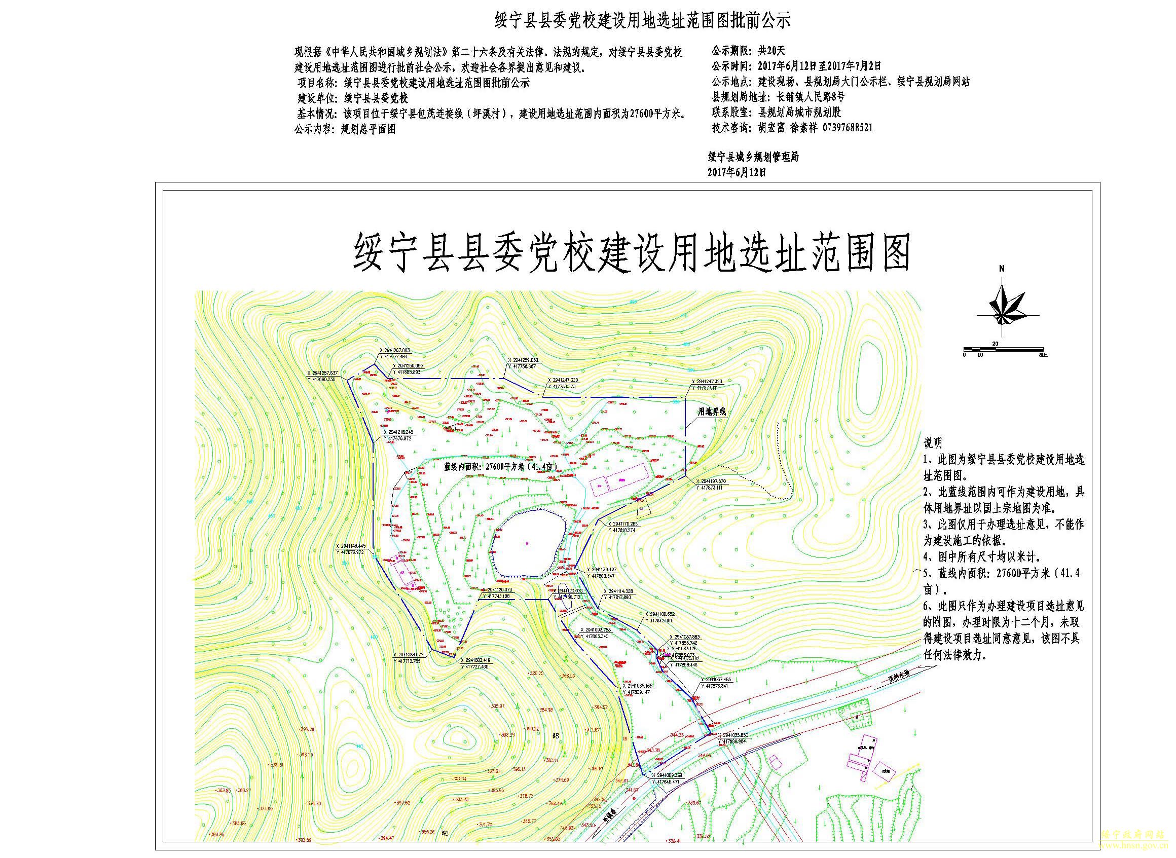 绥宁县委党校建设用地选址范围公示图